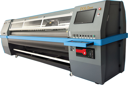 Maximum Speed, Maximum Output High Quality Solvent Printer. The high speed industrial grade solvent printer is built on a heavy-duty structure. The independent drive technology is renowned for its high speed, high quality output and reliability, as well as low running cost. In POLO TURBO solvent printer the independent drive technology drives each nozzle independently to achieve high speed production upto 1600 sqft./hr. POLO TURBO is supported by IR-based effective evaporative drying system, to meet high-volume requirements. This solvent printer has 3.2 mtr roll-to-roll capability and is based on an industrial grade jetting assembly which ensures accuracy at high speed. This is the best solution for diverse indoor/outdoor applications.